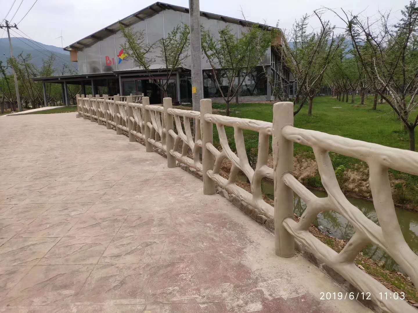 仿木栏杆做成的材料是混土,混土有很难维护的缺陷,它破裂了。 开裂的问题一直是园林景观制作者最头痛的问题,除水泥、河砂、水的配置比例合理外,在日常维护方面也很重要,除了模木、筑山、雨天以外,即使在阴天,每天也要洒水3次左右,分别是早上、中、晚上各洒1次,晴天的话要洒6次以上,当地的天气就好了。